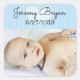 Personalised Baby Boy Photo Stickers Blue Heart Stripe, cute to use for birth announcement or baby shower thank you notes.