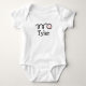 Personalised baby romper bodysuit with baseball theme design. Cute custom name jumpsuits for boy and girls. Add your own name to personalise this jumper suit. Cute sporty baby shower or 1st Birthday gift idea for newborn child or infant. Summer theme design. Cool presents for new parents / new mum / dad. Create your own for grandchild, grandson, granddaughter, nephew, cousin etc. Sizes for one and two year old, 6 and 18 months old. Colourful primary colours.