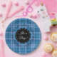 Personalise these cute baby boy, "its a boy" baby shower small cake plates, with blue plaid chequered stripes and black label on the inside that says, "Its a boy."