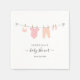 Whimsical calligraphy and cute baby items in soft shades of pink and coral set the perfect backdrop for your Baby Shower napkins.