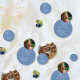 Personalised Baby Shower Photo Confetti with a trendy coquette Blue Bow. Offers customisation with the mum's name and the date or location along with three photos. Choose to add one of each parent and a maternity photo or three maternity photos. This confetti adds an adorable touch to your table settings or gift tables. Enter the Zazzle Design tool to change the position of the photos or the background colour on the confetti.