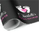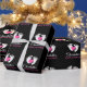Lovely pink and white personalised baby shower wrapping paper . Add mum-to-be's name. Baby feet in white with heart in middle. Perfect for wrapping your gift or baby girl party favours. Black background can be changed to any colour.