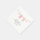 Whimsical calligraphy and cute baby items in soft shades of pink and coral set the perfect backdrop for your Baby Shower napkins.