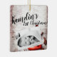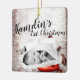 This is a lovely ornament, and great that you personalise the back with details of birthday, weight, etc.. My only tiny disappointment is the "My First" doesn't stand out very well on the background. More than happy with the printing of the photo and the writing on the back.