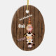 This Baby's First Christmas holiday tree ornament features a cow with a pig standing on it's head a rooster standing on the pig's head. They are making noise... "Cock-A-Doodle-Doo, Oink, MOOO!". The back has the text "1st Christmas" and can be personalised with a name, year or any text that you wish to add. They are set against a faux barn wood background. Some graphics by Trina Walker at DigiScrapKits.com. ^