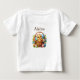 Sweet little water colour vintage Easter bunny holding an Easter basket of eggs and the text, "Baby's first Easter" on the front. The back is a basket full of eggs with a baby chick in it and the baby's name.