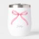 Personalised Bachelorette Party Favour Stemless Thermal Wine Tumbler with a simple pink coquette bow.