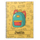 Gear up for a fantastic new school year with this cheerful and customisable notebook! Featuring a vibrant blue backpack surrounded by playful black-and-white school doodles like books, a globe, and a school bus on a bright yellow background. This fun design is perfect for organising all your notes and assignments. Easily add your name, grade, or a special message to make this notebook uniquely yours. An exciting and personalised accessory for the 'Back To School' season!