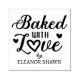 This "Baked with Love" rubber stamp features script lettering with custom name.