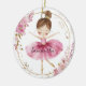 Personalised Ballerina Girl Ceramic Ornament with beautiful watercolor pink florals and girl dancing in her tutu and ballet slippers, Joyful dance ornament for ballerinas.