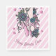 Pretty ballet shoes for your little ballerina accented with flowers and beads. A pink and white stripe background completes the ensemble. Can be personalised.