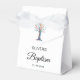 These modern Baptism Favour Boxes are decorated with a brightly coloured tree and a cross.