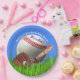 Personalised Baseball Baby Shower Paper Plates. Type in Mummy to Be's NAME Baby Shower or YOUR TEXT or Delete any or all of the text. Change for a baseball birthday party. You, or Designer Linda: 239-949-9090 can Change the Blue and White Background and Text Colours to ANY COLORS or move or remove any parts of the baseball paper plates designs.