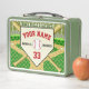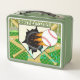This is a standard metal lunchbox that appears to work just fine. We designed this box ourselves with an uploaded photo and custom text on the front and back. It looks absolutely beautiful except the front of the lunchbox is not centered like it shows in the photo. The print borders don't align with the inset flat part of the box where the preview photo online showed it perfectly centered in there. The back looks nice and centered though.