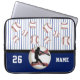Personalised Baseball Laptop Case with Your Name and Number or Monogram or Your Text or Delete. CALL Zazzle Designer: 239-949-9090 to Change the COLORS, Design, Different Baseball Laptop Sleeve, Phone cases or your choice of thousands of products. I can Change the Navy Blue, Baseball Stripes, Text or make other design and product CHANGES.
