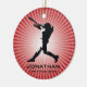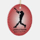 Baseball Player Personalised Ornament. A Batter in position against a red and white starburst background. All text customisable, front and back!