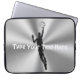 Cool silver Personalised Basketball Case for 10 to 15 inch Laptops with YOUR TEXT. Techno Basketball Player Silhouette in a layup shot. Protect your computer with these custom laptop cases.