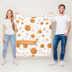 A fun sports pattern of basketballs of different sizes on a white background, with an orange and white accent for adding the name of the basketball player, basketball fan or basketball coach. Ideal for netball players too!