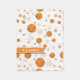 A fun sports pattern of basketballs of different sizes on a white background, with an orange and white accent for adding the name of the basketball player, basketball fan or basketball coach. Ideal for netball players too!