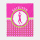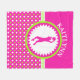 Monogrammed basketball fleece blanket that features a pink, green, and white polka-dot design. Use the custom text field to add a name before you order. Or if you prefer, leave the text field blank for no name.