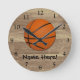 Personalised Basketball Wood Floor Round Clock