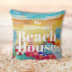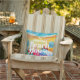 "Beach House" and your family name highlight this pattern of waves on a sandy beach and sunbathers under colourful umbrellas, this design is a fun addition to your summer outdoor decor. MATCHING items in our store.
