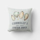 This coastal cool throw pillow for your beach house, patio, or salty abode features soft cream and aqua watercolor oyster and pearl illustrations. Personalise with a family name and year established along the bottom, along with "Oyster Shack" or your choice of personalisation.