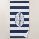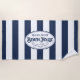 Our personalised, vintage style beach house towel makes a perfect addition to your summer home!Design features nautical navy blue and white stripes and vintage typography, with your family name and year established for a unique customised touch. Makes a great housewarming gift for new beach house owners!