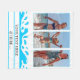 Fleece blanket featuring your own photos and texts with a wave splash image and fresh turquoise stripes.