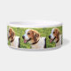 I absolutely love this product! I was a little concerned prior to buying it, but I was blown away by the quality of the item. The bowl is sturdy and arrived clean without any damage. The printing was crisp and clean and looks Better than I hoped! My dogs immediately knew these were for them and get very excited to pose with their new bowls! Definitely recommend and will purchase more in the future! The printing is crisp and well done. It looks absolutely beautiful on the bowl, and I can tell that it’s going to hold up well over time.