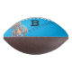 Personalised football featuring an athletic bear holding a football. Modern blue colours. Customise the text on the football with your monogram or number and desired name or text. Use the template to create your own personalised football.