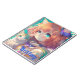Beautiful Anime girl with two blue eyes holding an adorable kitten. Colours used are pink, teal, orange, blue, purple and blue. Cute and colourful children's Ai art. generatviecontent