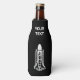 Personalised beer bottle cooler with modern space rocket and custom name. Funny novelty aerospace design with customisable background colour. Create a cool beverage holder for men and women; dad, father, husband, uncle, grandpa, son, wife, aunt, mum, mother, brother etc. Great for watching a launch, lift off or return to earth party.