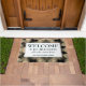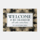 Personalised Beige Bokeh WELCOME Doormat with the wording WELCOME & BE BLESSED ALL WHO ENTER HERE plus placeholder name. The background is a turquoise bokeh pattern. All text is CUSTOMIZABLE so you can amend the wording to suit your needs.