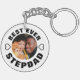 Modern keyring for stepdads this fathers day, or birthday, with text that reads 'BEST EVER STEPDAD' in white and black, all font styles, sizes and colours can be changed by clicking on the customise further link after personalising.