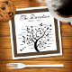 A Family Napkin with a stencil-art black tree holding 20 names. You can fit 20 family members' names on these napkins. This would be perfect for Family Reunion parties. Your family will love it and will have fun finding their name.