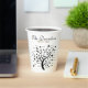 A Family Cup with a stencil-art black tree holding 20 names. You can fit 20 family members' names on these cups. This would be perfect for Family Reunion parties. Your family will love it and will have fun finding their name.