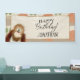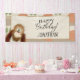 This banner is perfect for your little boy's Bigfoot themed birthday party. The banner is created with a Bigfoot illustration, which will help make your party more exciting. The banner is printed on a vinyl banner, which is easily hung so you can hang it up quickly. The banner is personalised with your child's name and the words happy birthday and string lights in the back.