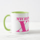 Personalised big giant jumbo XL Extra large coffee mug. Funny gift idea for home or co workers in the office. XXL cup for men and women. Add name. Pink and green colours.