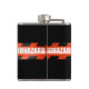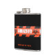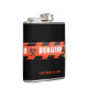 Humourous black drinking flask with graphics of a orange Caution BioHazard tape, running around the flask. Personalise the orange text, on the bottom front to read what you want. Great gift idea for any guy and especially great as a wedding party gift for groomsmen.