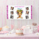 Pretty little girl of colour Princess with a tiara and pink flowers in her hair. Add name in personalise area. Birthday party paper plates.