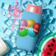 This birthday balloon seltzer can cooler may be edited from "birthday vibes" to the word or words of your choice.