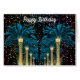 Personalised birthday card, fantastic palms with lights, snow and stars are falling on the black background.
