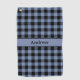 Blue and black Buffalo plaid personalised golf towel for any member of the family. Add your own text.