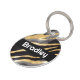 A brown and faux gold patterned pet tag with space for your pet's name and your phone number or other contact information.