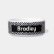 A personalised collar with a black and white abstract geometric design. Contains space for your pet's name.