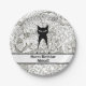 Cute Personalised Black and White Kitty Cat and Garden Happy Birthday Party Plates