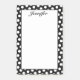 Black and white polka dotted pattern with a personalised text message in modern elegant calligraphy.