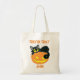 A cute black cat sitting on top of a Halloween pumpkin on this adorable Trick or Treat tote bag for kids. All ready to personalise with any child's name.