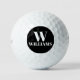 Minimalist elegant simple black custom monogram initial, letter and name, or last name personalised Titleist Pro V1 Golf Balls, available in many brand options